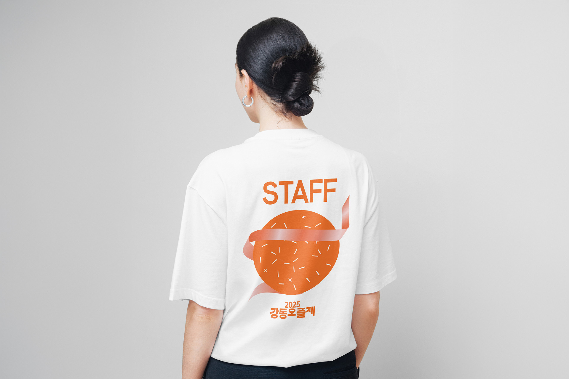 ‘축제의 개막을 알리는 무대’라는 콘셉트로 주황빛 에너지·리본·컨페티·굵은 타이틀을 묶어, 행사의 의미를 지키면서 한눈에 읽히는 키비주얼을 만들었습니다. 무대 백월·포스터·배너·스태프 티셔츠까지 일관되게 확장됩니다.